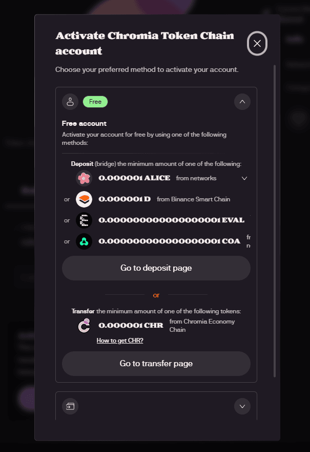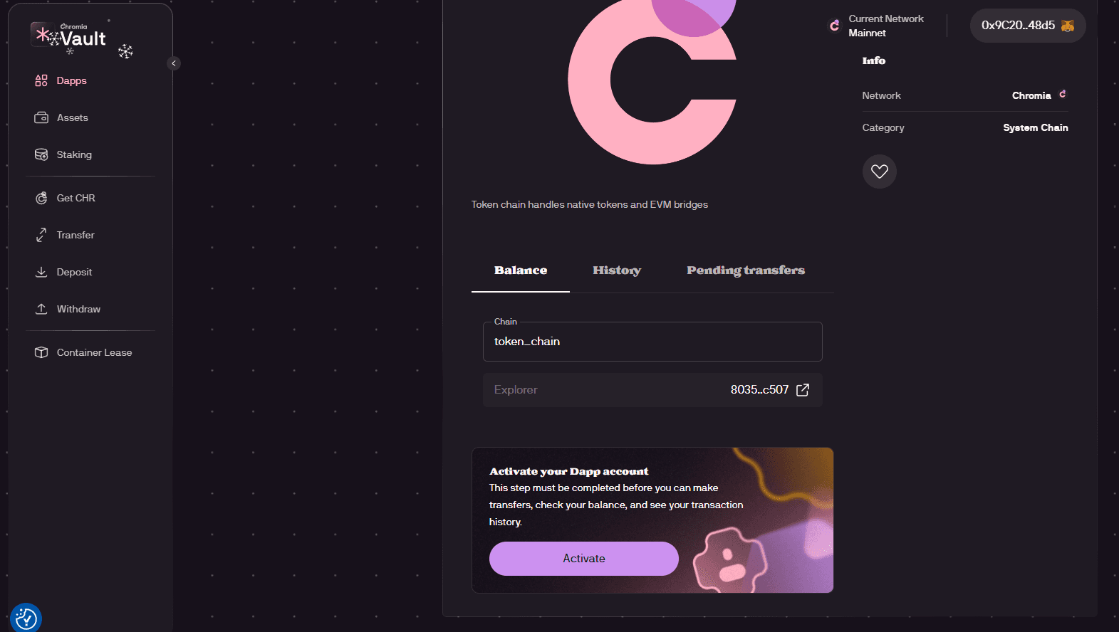 https://vault.chromia.com/en/dapps/dapp/?dapp=1807-Chromia+Token+ChainClick Activate